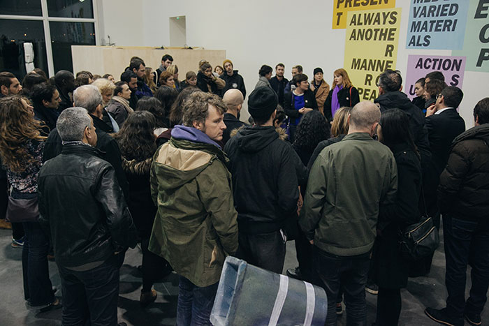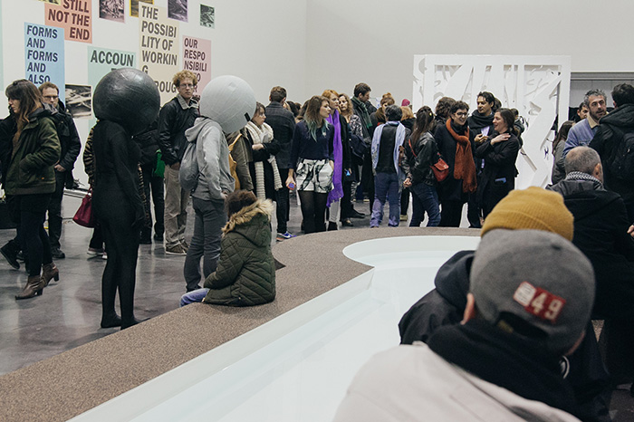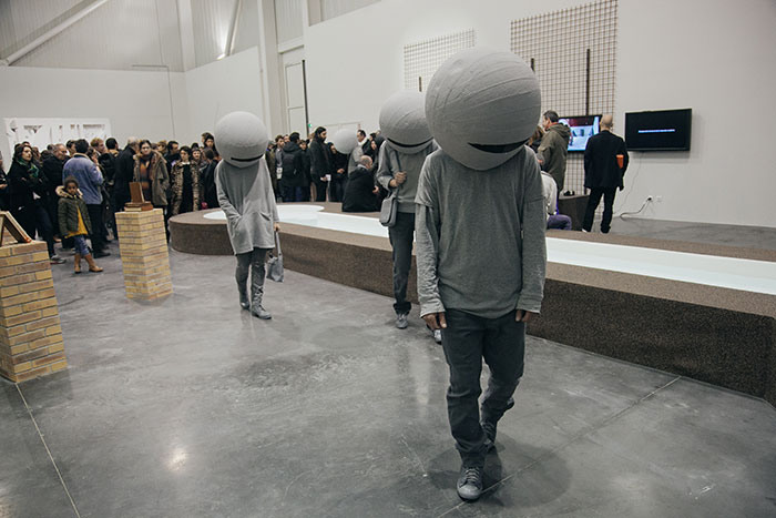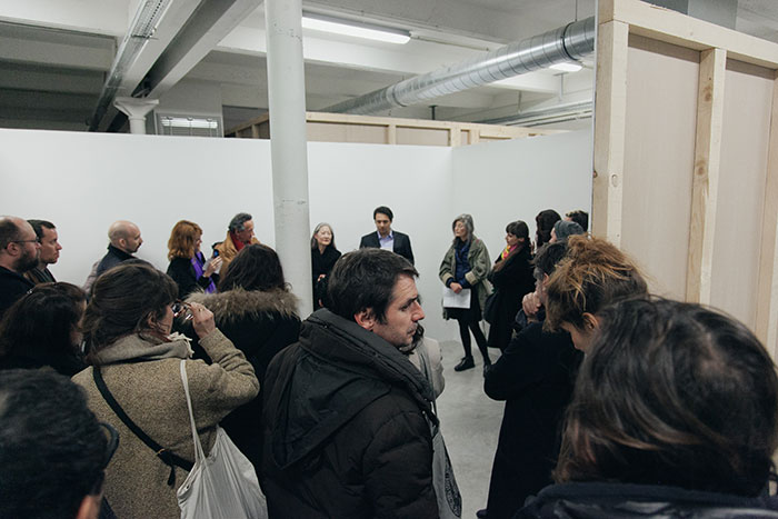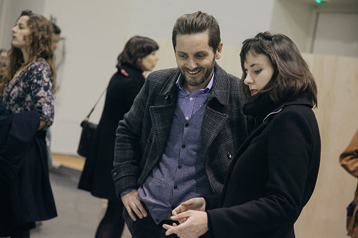 Opening Friday February 13th, 2015. Performance by Rémi Illig Je suis une bille (3e contact) within Moucharabieh. © Photo Lionel Mariotti.