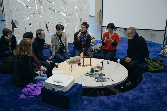 Panel discussion with Alessio Antoniolli (Director, Gasworks, London), Céline Kopp (Director, Triangle France), Sandra Patron (Director, Musée Régional d’Art Contemporain Languedoc-Roussillon and Vice President of Triangle France’s board), Bruno Peinado (Artist, President of Triangle France’s board), Clémence Seilles (Artist), Alun Williams (Artiste, Founder of Triangle France). Moderated by : Étienne Bernard (Director, Passerelle Centre d’Art Contemporain, Brest, and Vice President of DCA)